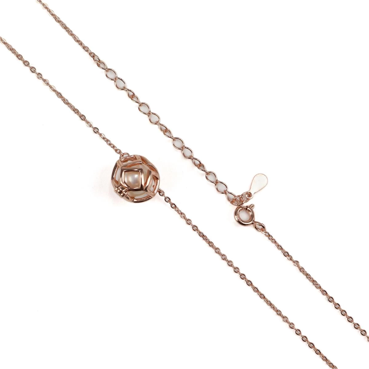 Add this beautiful Rose Gold Plated 925 Sterling Silver Floral Caged Freshwater Pearl Necklace (18 Inch Chain & Extender) into your wonderful collections.