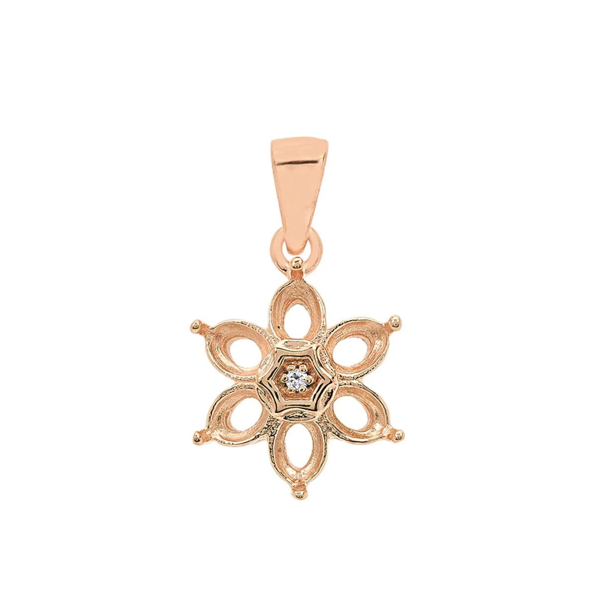 Rose Gold Plated 925 Sterling Silver Flower Oval Pendant Mount (To Fit 5x4mm Gemstone) Inc. 0.02cts White Zircon Brilliant Cut Round 1.50mm-1Pcs