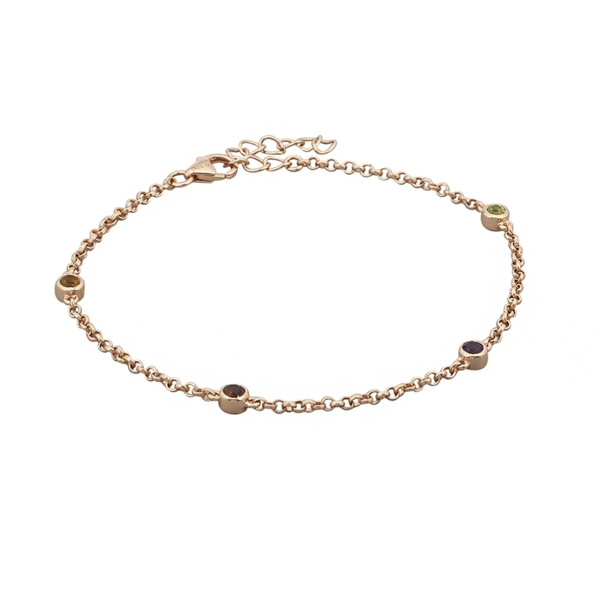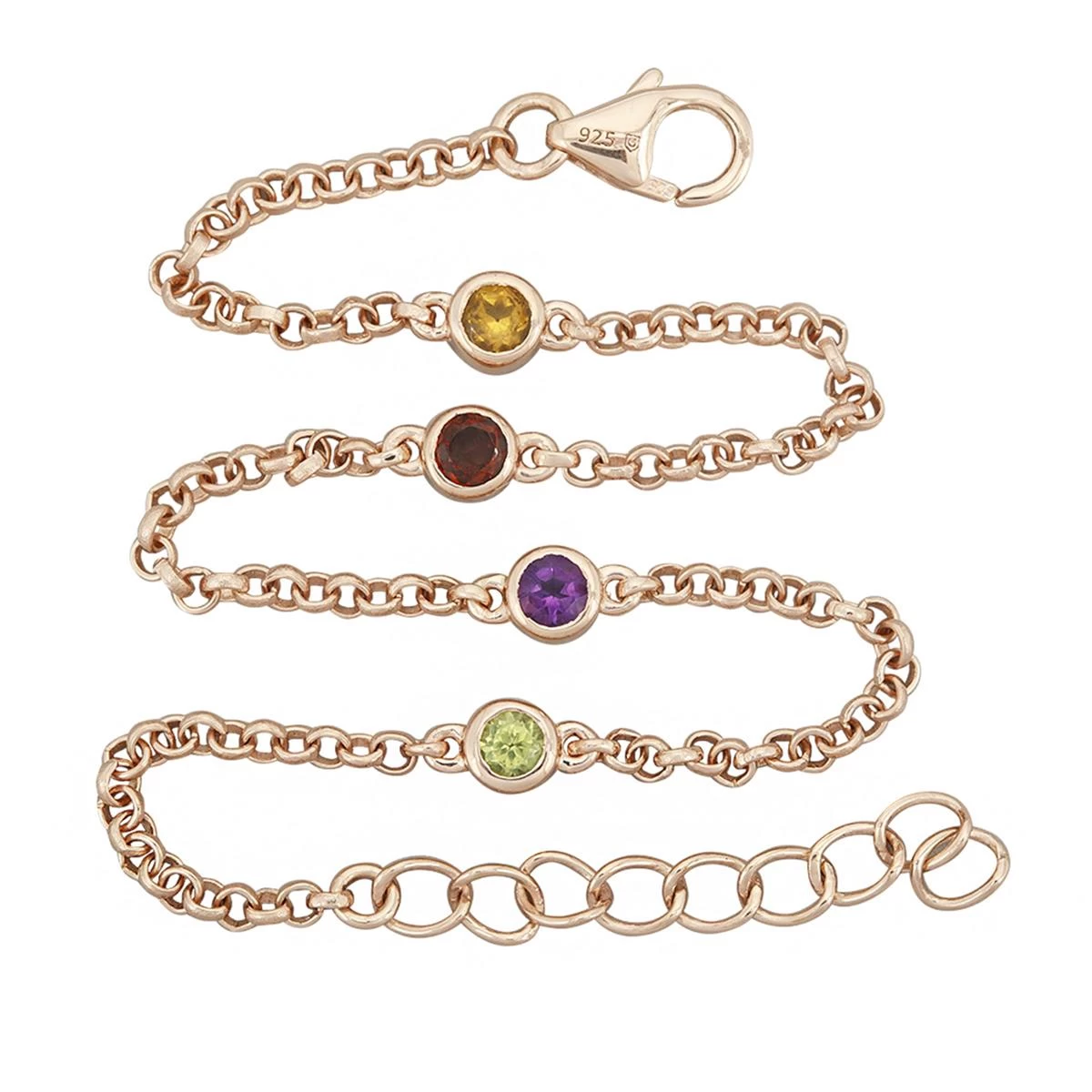 Rose Gold Plated 925 Sterling Silver & Multi Gemstone Bracelet With Extender Chain (0.48cts Red Garnet, Changbai Peridot, Amethyst, Citrine)