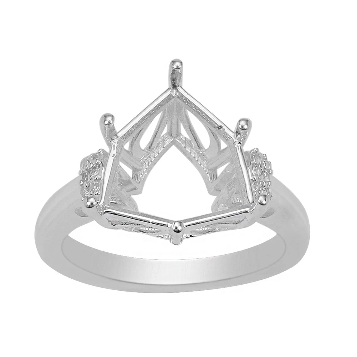Rudi Wobito Alpine Cut 925 Sterling Silver Ring Mount With White Zircon Pave Side Detail (To Fit 12mm Alpine Cut Stone)