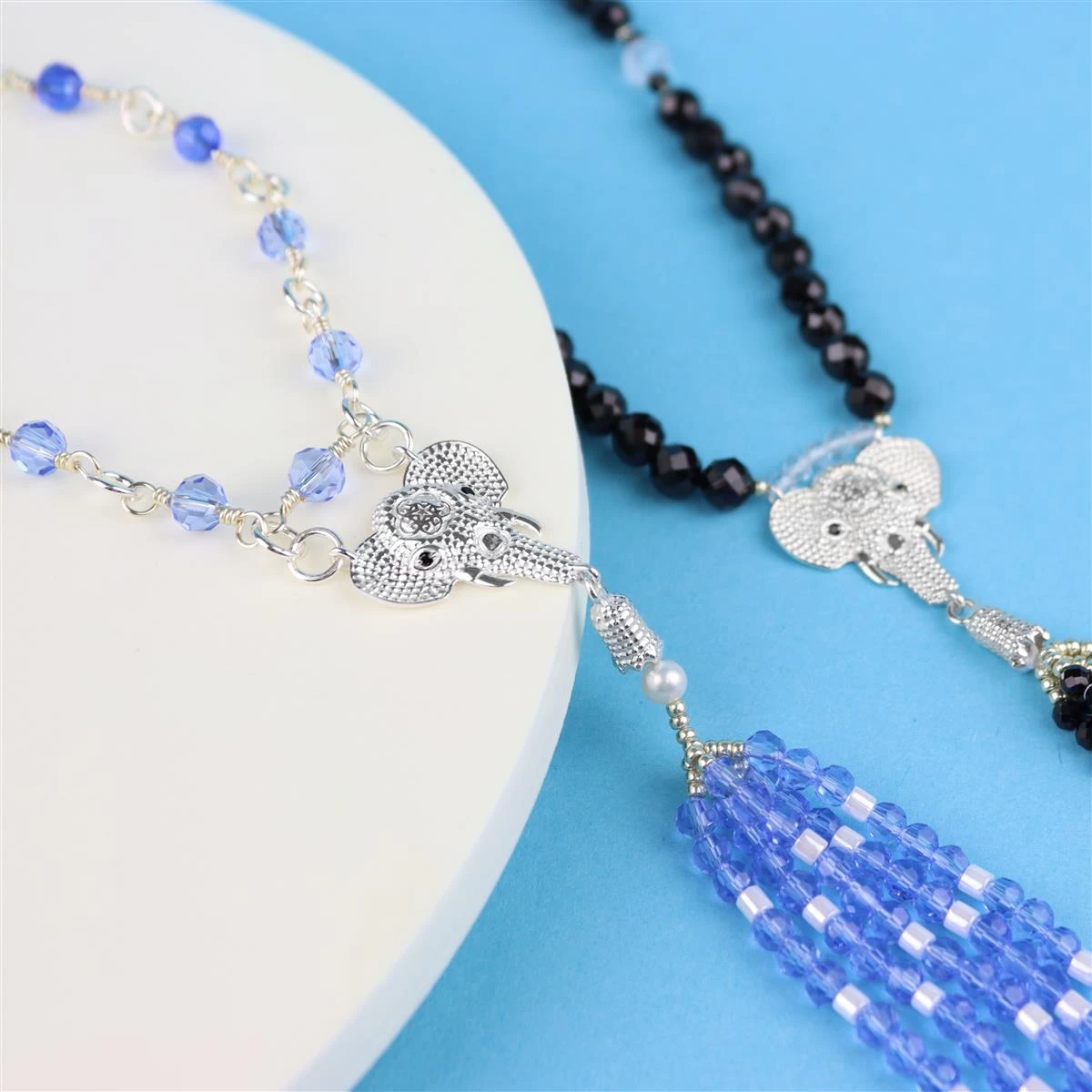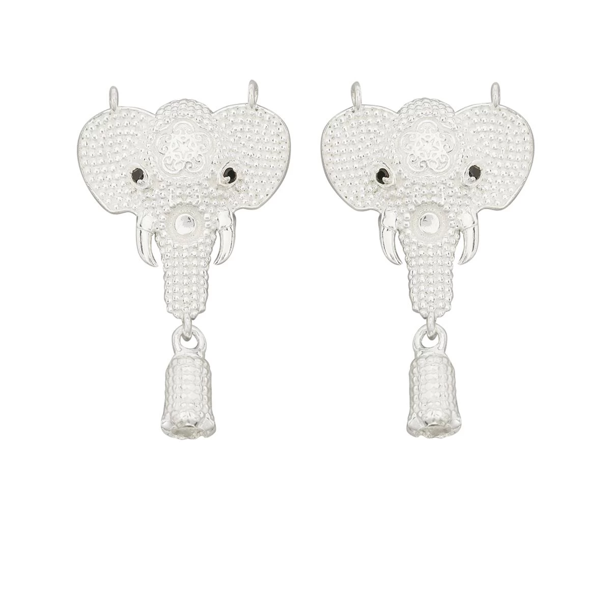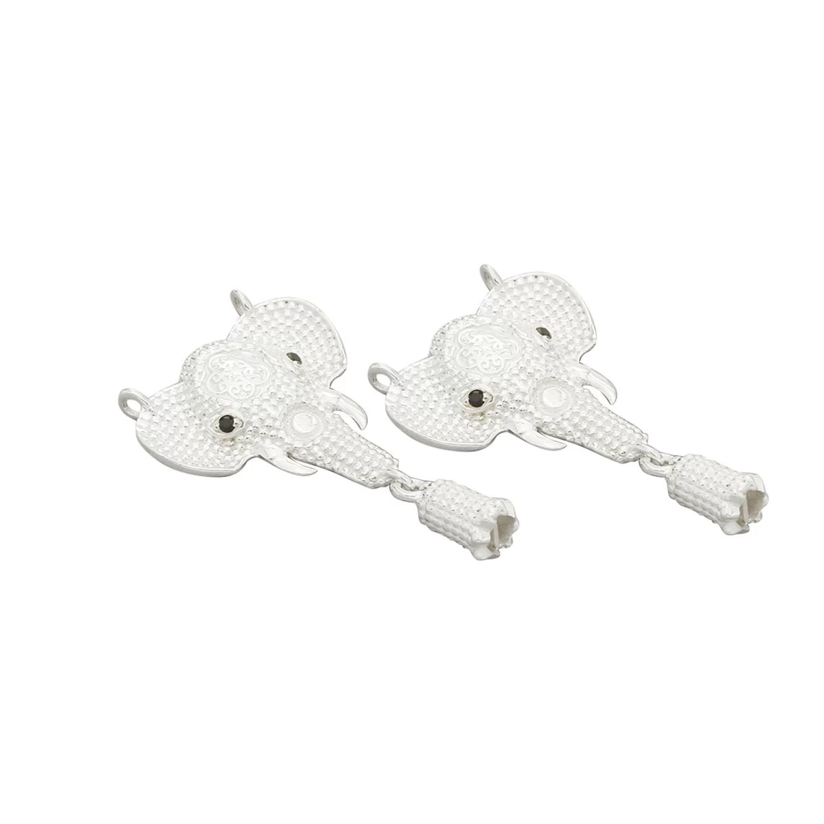 Silver Plated Base Metal Elephant Tassel Caps With Black Spinel Eyes, Approx 22x36mm – 2pcs