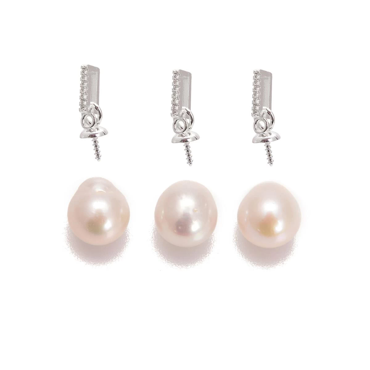 Silver Plated Pave Base Metal Bails, Approx 10mm (3pk) And Half Drilled Near Round White Pearls Approx 10mm (3pk)