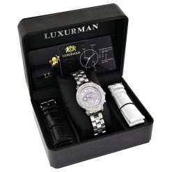 Designer Large Luxurman Phantom Real Diamond Watch For Men 0.12ct