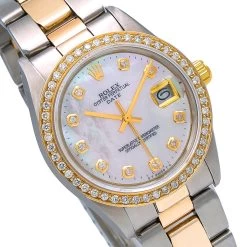 Women’s Diamond Yellow Gold Oyster Perpetual Datejust 34mm Rolex Watch With Mother-of-Pearl Dial