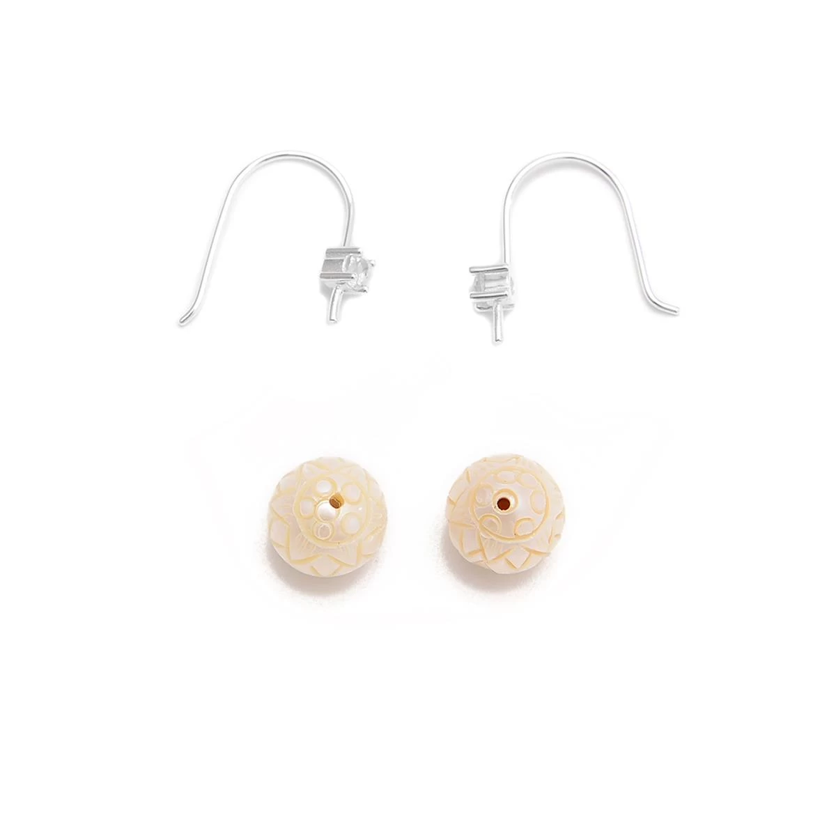 Create ideal finished designs with this White Freshwater Pearl Rounds with Sunflower Carving and 925 Sterling Silver Ear Wire with White Topaz Peg.