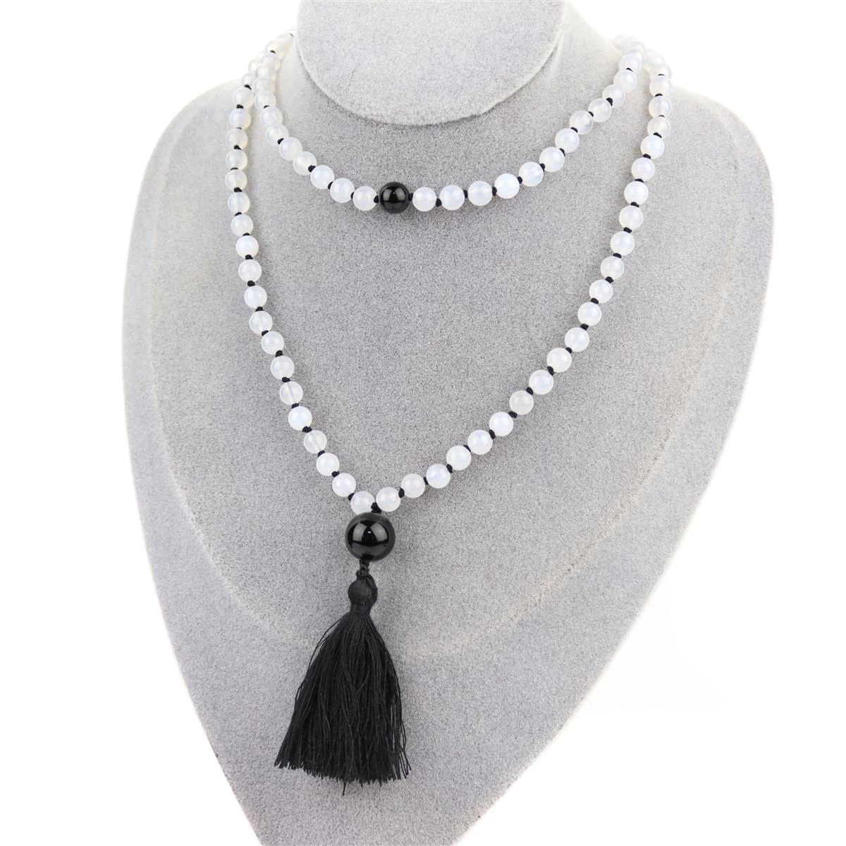 White Onyx Mala Kit-180cts White Onyx Round 6mm, Black Onyx Round 8mm & 12mm, 7M Black Nylon Cord, 50mm Black Tassel, 1 Plastic Box
