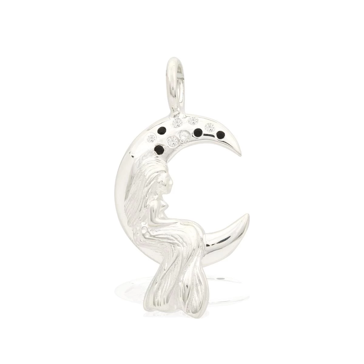 Willow & Tig Collection: Love You To The Moon & Back 925 Sterling Silver Charm Approx 30x15mm With Black Spinel & White Topaz