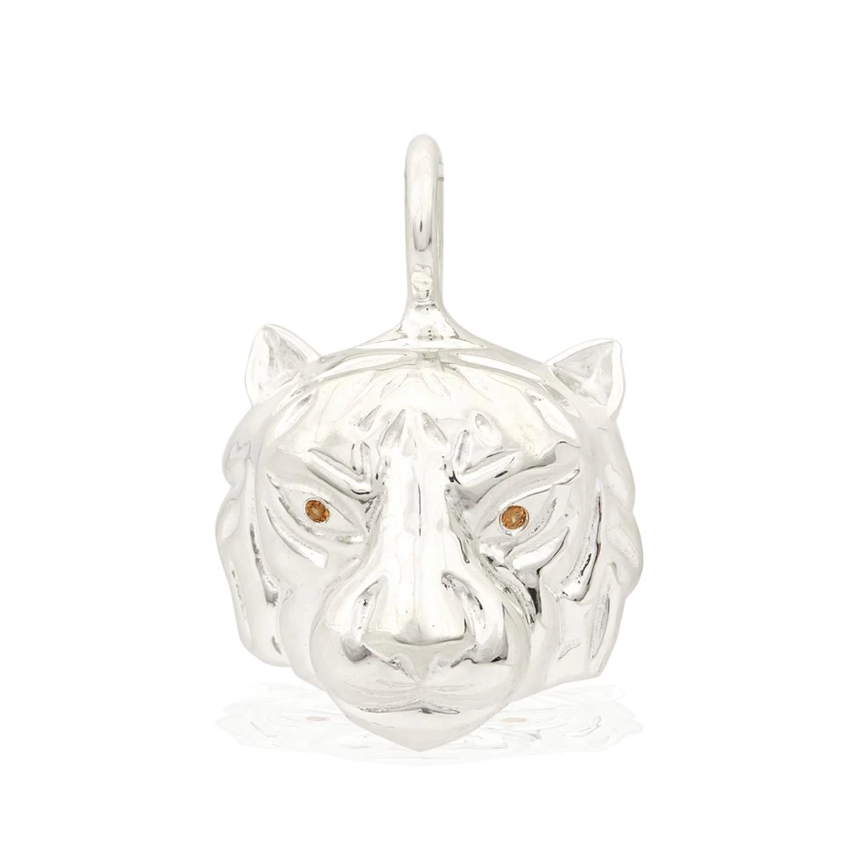 Willow & Tig Collection: Siberian Tiger 925 Sterling Silver Charm Approx 24x17mm With Orange Sapphire