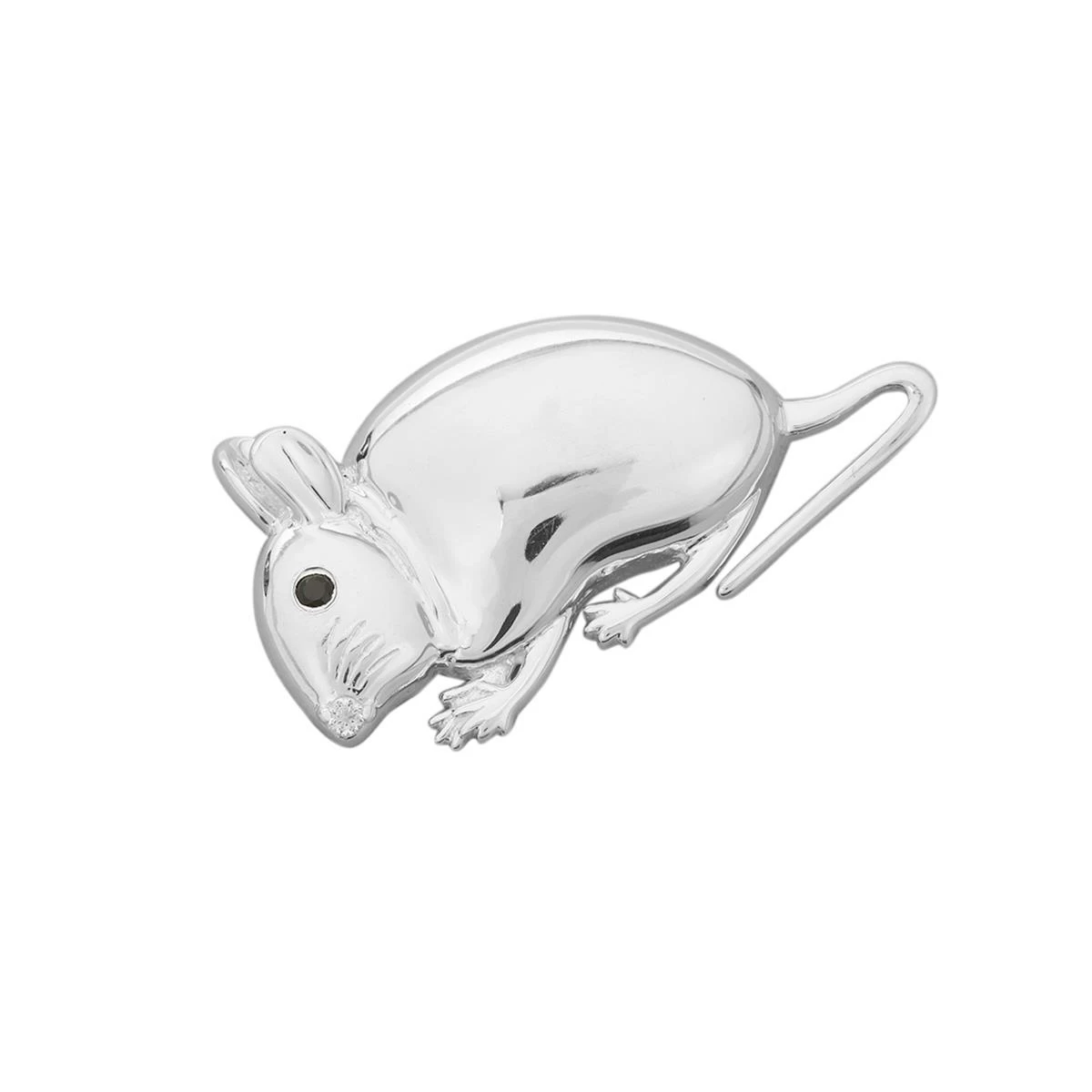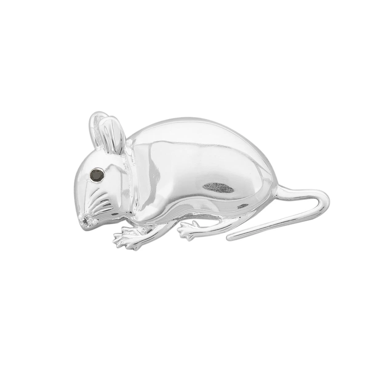 Winter At Chestnut Close By Mark Smith: 925 Sterling Silver Mouse Pendant Approx 15x27mm With White Zircon Nose & Black Spinel Eyes