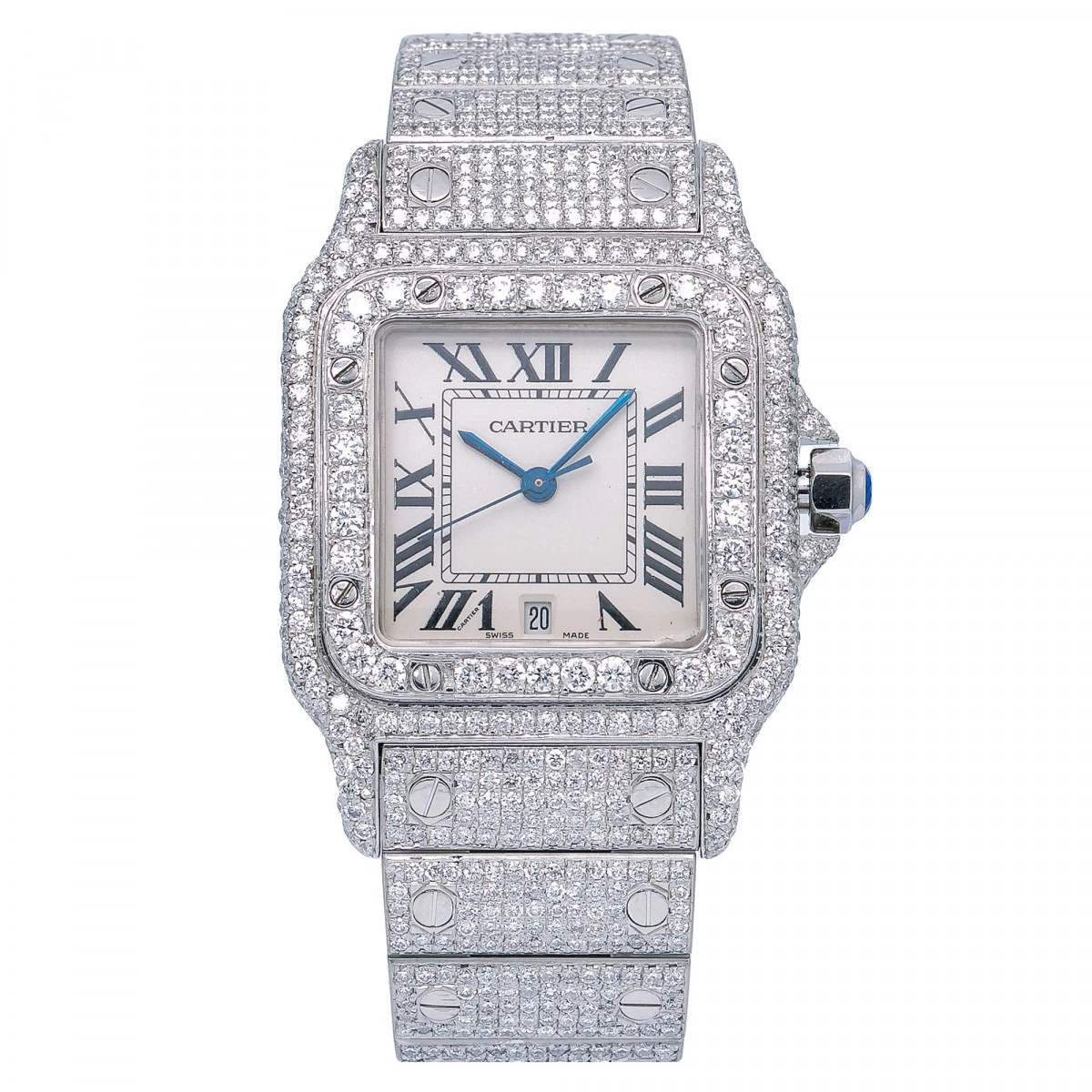 Women’s Diamond Watch Cartier Santos De Cartier 29mm White Dial