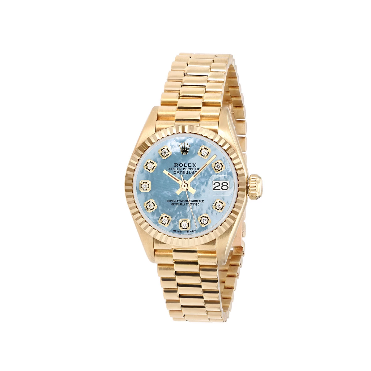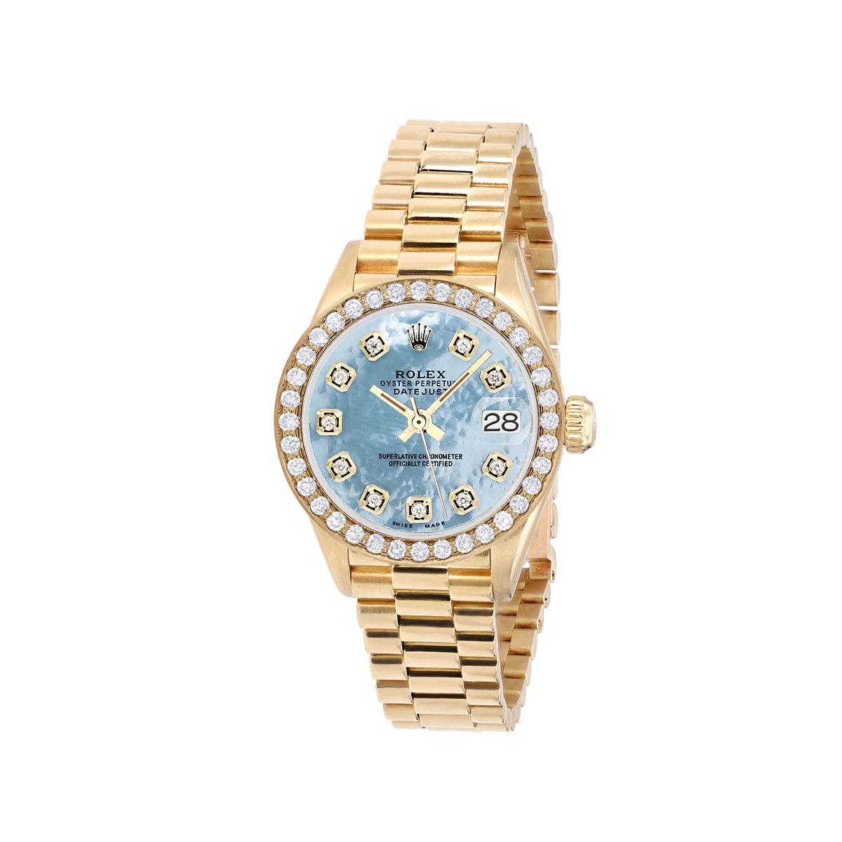 Women’s Diamond Watch Rolex Datejust 18K Gold 26mm Blue Dial W00147