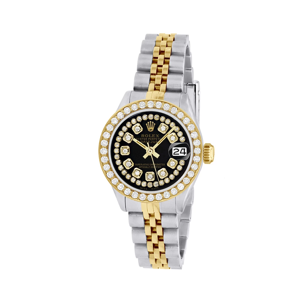 Women’s Diamond Watch Rolex Datejust Gold 26mm Black Dial W00309